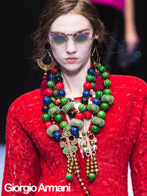 部落風格一直是占有一部分消費者青睞的流行飾品議題,是因為異國風情是很容易跳脫主流流行並彰顯個人特色的一種簡單方法。但在2019年,小編想要提醒您幾個需要注意的差別。首先是「同形不同色」的觀念,因為採用部落風格容易讓人感到老氣、傳統,所以在選購時,您可以選擇在顏色的搭配上「異於」傳統的部落風格配色來避免過於傳統。再來是在2019年流行的是少數民族亦或是已逝的民族,如同Prabal Gurung圖片中能讓您聯想到朝珠意象的滿清王朝和 Ulla Johnson 與 Giorgio Armani 圖片中讓您聯想到非洲部落的意象一樣。若能夠把握這2種方法,相信您可以在異國風情的流行飾品裡游刃有餘。